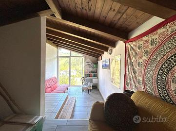 Esternamente, troviamo un vano magazzino, dove al piano terra troviamo l'autorimessa e la legnaia, al piano superiore, troviamo un ripostiglio completamente ristrutturato.