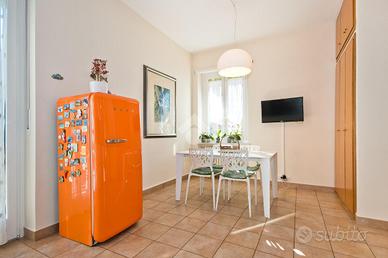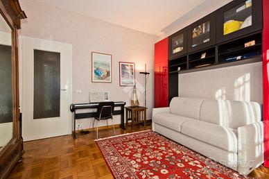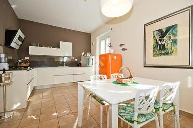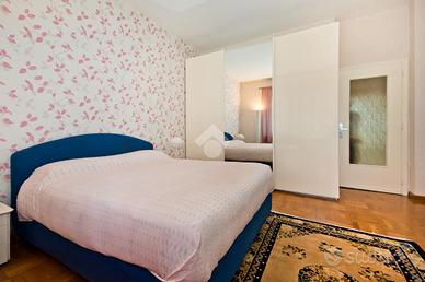 La cucina abitabile è servita da un balcone e un secondo disimpegno conduce alla zona notte composta da due camere da letto matrimoniali e doppi servizi finestrati, uno con vasca e uno con doccia.