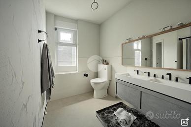 La zona notte è composta da una camera matrimoniale con servizio privato e due stanze utilizzabili come camere da letto o studio. Gli spazi interni risultano ben distribuiti e facilmente personalizzabili.