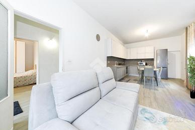 Troviamo un accogliente soggiorno con la spaziosa cucina open-space.