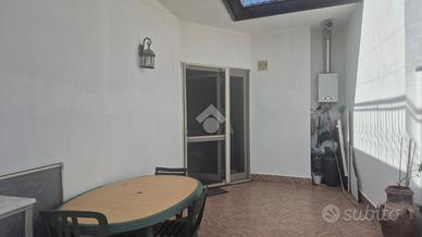 Il palazzetto: soluzione indipendente su due livelli, piano terra adibito a garage con apertura comoda con mq 106 interni, uscita su cortile interno ed alla corte di terreno di mq 717 di proprietà. La casa al piano primo con accesso da scale interne di collegamento sia dal garage che da portincino su strada, salone d'ingresso ampio con angolo cottura, camera da letto, camerino, due servizi, balcone su strada e balcone interno con terrazzo a livello con vista sulle campagne retrostanti. Doppia esposizione a nord e sud, terrazzo sovrastante di mq 110 circa con possibilità di edificare mansarda come da ipotesi di progetto verificata ma da presentare per l'approvazione. Le condizioni interne sono ottime, infissi alluminio doppi vetri, impianti e bagni rifatti, cosi come la pavimentazione, impianto riscaldamento con canalizzazione da stufa a pellet.