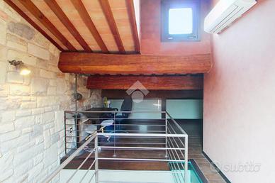 L'immobile è stato completamente ristrutturato nel 2012, mantenendo intatto il fascino originale grazie ai soffitti con travi a vista e alle pareti in mattoni, che donano calore e carattere agli ambienti.