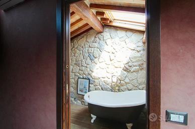 L'ultimo livello ospita una graziosa mansarda, dove trova spazio una stanza intima con vasca da bagno, ideale per creare una zona relax o uno studio riservato.