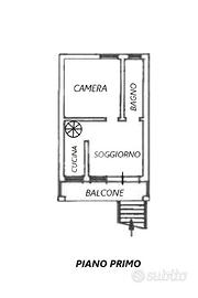 La soluzione si sviluppa su due livelli: l'ingresso è al piano primo, raggiungibile tramite scala esterna. Si compone di ingresso su zona giorno con angolo cottura, bagno con vasca e camera matrimoniale.