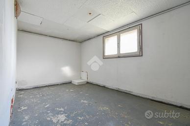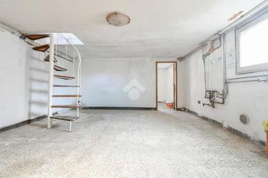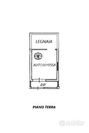 Il piano terra, invece, al momento è raggiungibile esclusivamente tramite scala a chiocciola, e si suddivide in ampia autorimessa e legnaia uso cantina. Le altezze corrispondo a 2,05 m.