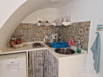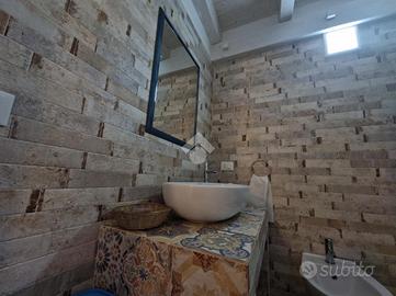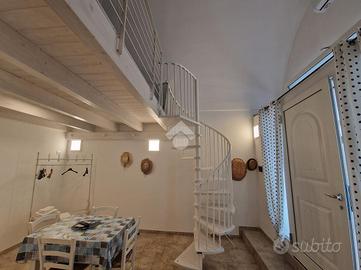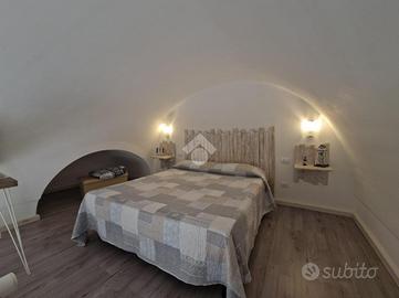 Distribuita su tre livelli, la proprietà vanta un ampio locale, accessoriato e soppalcato, al piano terra di circa 37,50 mq, caratterizzato da suggestive volte a botte e una pavimentazione in chianca che aggiunge un tocco di autenticità.