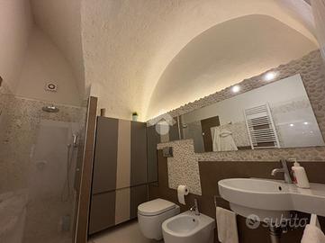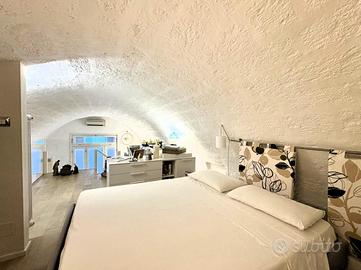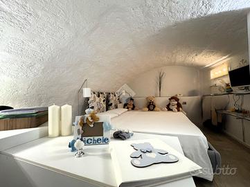 Le volte a botte permettono la presenza di un soppalco, dove è stata ricavata un'ulteriore camera da letto, creando uno spazio intimo e riservato.