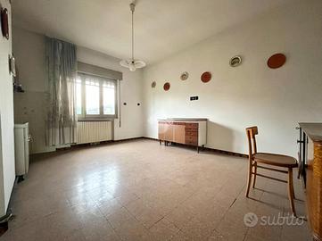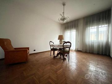 Soggiorno con cucina separata abitabile, sala da pranzo, quattro camere di cui due matrimoinili, una singola e una doppia, bagno finestrato con veranda.