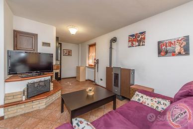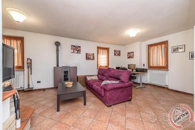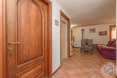 L'ingresso principale si apre su un accogliente disimpegno, uno spazioso soggiorno con caminetto e stufa a pellet, cucina abitabile, ripostiglio e bagno.