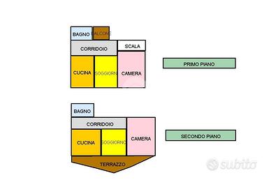 Al secondo piano si viene accolti da un ulteriore bilocale anch'esso composto da cucina e soggiorno separati, camera da letto matrimoniale e bagno con vasca.
