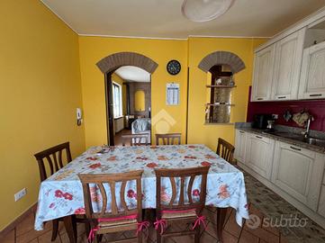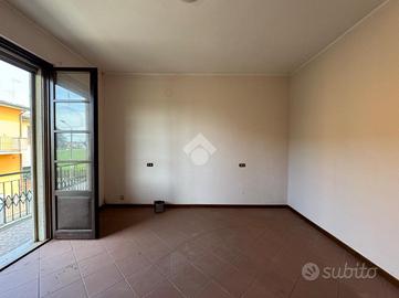 al piano primo soggiorno e cucina in ambiente unico, due camere da letto matrimoniali, un bagno e due balconi. Completa la proprietà un box doppio.
