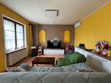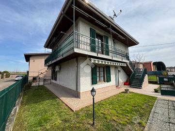 In tranquillo comune ben servito e a pochi minuti di macchina da Stradella, proponiamo villa bifamigliare completamente indipendente composta da due appartamenti con giardinetto, cortile privato e box doppio così composta: al piano terra soggiorno e cucina in ambiente unico, disimpegno due camere da letto matrimoniali e bagno;