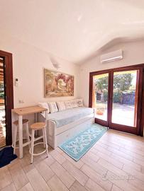 (193032360) - Cin. 090047C2000T4477 Settembre 300,00 / notte; Ottobre 250,00 / notte . A 6 minuti a piedi dalla bellissima Spiaggia Ira, a Porto Rotondo, e precisamente in Via Dei Pesci, proponiamo in locazione una piccola casa indipendente, edificata su un meraviglioso lotto di terreno completamente piantumato, pianeggiante ed estremamente riservato. All'interno del giardino è possibile parcheggiare 1 auto. La casa è disposta su due livelli, piano terra e piano semi interrato ma con finestre fuori terra. Al suo interno è così composta: Piano terra di mq 20 di superficie coperta, composto da cucina di 10 mq ca con divano letto e primo ampio servizio igienico finestrato, completo di tutti i sanitari e grande doccia. Da questa zona si accede ad una grande veranda coperta di 30 mq, arredata con tavoli, sedie, divani e piccolo barbecue mobile, ideale per i pasti all'aperto. Piano semi interrato accessibile da scala esterna, di ulteriori 20 mq circa, composto da camera matrimoniale, secondo servizio igienico completo di tutti i sanitari, ripostiglio con lavatrice. I posti letto sono: 2 nella camera matrimoniale posta al piano semi interrato, ed ulteriori 2 posti letto nel divano al piano terra, nella zona living. Disponibilità di culla o ulteriore lettino pieghevole. Questa soluzione è l'ideale per una coppia con 1 o 2 figli. Non è l'ideale, invece, per due coppie, in quanto è presente solo 1 letto matrimoniale. Disponibile da subito, già full per tutto il mese di Agosto. Inclusa biancheria e pulizie iniziali/ finali. Per maggiori informazioni contattare Valeria Ondradu.