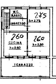 Salendo pochi gradini si raggiunge la porta d'ingresso, dalla quale si accede a una scala interna che conduce al piano abitativo: un disimpegno ben distribuito introduce alla zona notte e giorno.