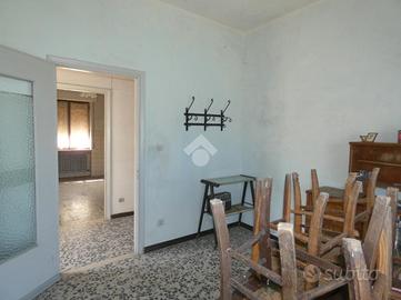 L'immobile è composto da un ampio magazzino al piano terra, diviso in due parti, al primo piano troviamo una zona giorno composta da cucina, soggiorno, tre camere, bagno e due balconi.