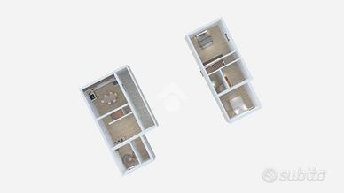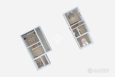 Le scale interne ci conducono al primo piano dove troviamo le due camere da letto matrimoniali e il bagno finestrato con box doccia.