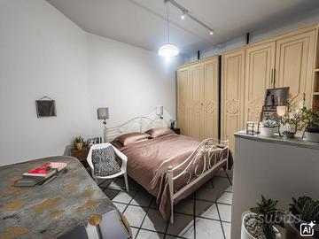 Al primo piano, abbiamo una camera di medie dimensioni con bagno cieco e box doccia sulla sinistra, mentre sulla destra troviamo la seconda camera matrimoniale.