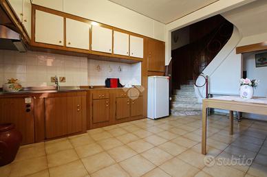 Tramite scala interna ed esterna si accede al primo piano, dove si apre la zona giorno, composta da cucina abitabile e luminoso soggiorno, ideale per momenti in famiglia.