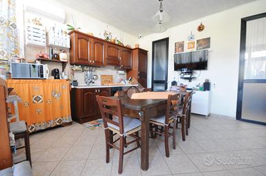 Al piano terra troviamo la zona giorno composta da un ampio e luminoso soggiorno, una cucina abitabile con accesso diretto all'esterno, un bagno finestrato con doccia e due camere da letto, di cui una matrimoniale e una media.