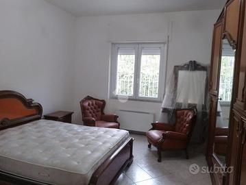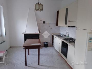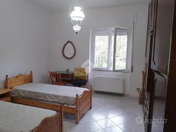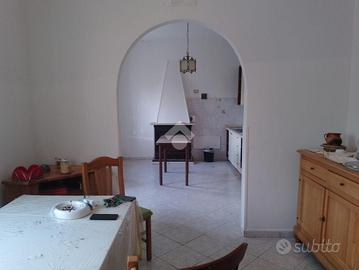 ingresso con salone a vista e cucina abitabile con camino,due camere da letto e servizio.