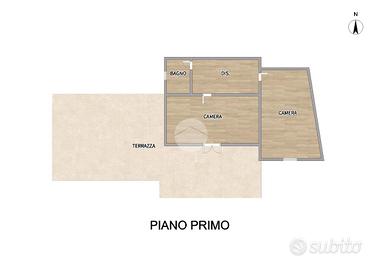 Al primo piano si sviluppa la zona notte, composta da una cameretta, un bagno finestrato e una camera matrimoniale con accesso a una spaziosa terrazza vivibile.