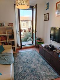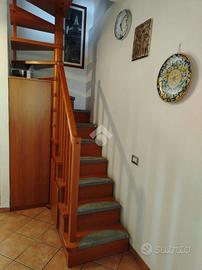 L'immobile internamente è così disposto: al piano terra si entra in un soggiorno luminoso con angolo cottura e zona pranzo, con una comoda e funzionale scala interna si accede al piano superiore dove il disimpegno conduce al bagno finestrato e ad una camera, attualmente ad uso soggiorno/ufficio con balcone e, al secondo piano, c'è la camera matrimoniale con all'interno una pratica cabina armadio. L'appartamento è arredato e in buone condizioni interne, dotato di riscaldamento autonomo con caldaia a condensazione, il rivestimento dei pavimenti è in monocottura in tutta la casa, i serramenti sono in legno con doppio vetro e zanzariere, è presente l'aria condizionata in tutti i piani.