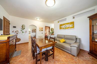al primo piano troviamo il soggiorno grande, la cucina abitabile e un cucinotto, successivamente andando nel disimpegno che porta alla zona notte, troviamo due camere da letto matrimoniali e il bagno finestrato.