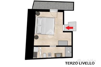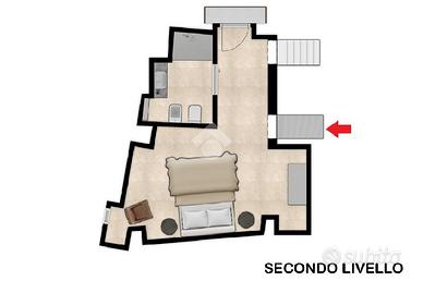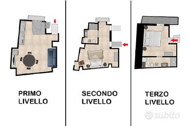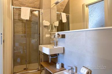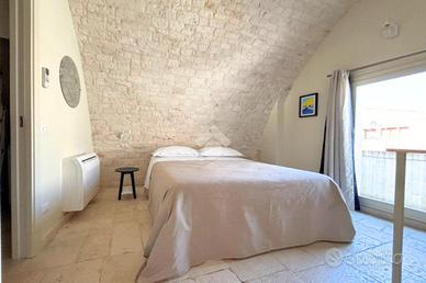 Salendo al secondo piano si accede a una camera matrimoniale con bagno privato, mentre il terzo piano ospita una seconda camera da letto, anch'essa con bagno privato e accesso a un balcone con scorcio sui tetti del centro storico.