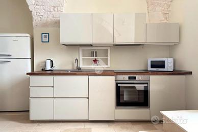 L'immobile si sviluppa su tre livelli collegati da una caratteristica scalinata in pietra. Al primo piano si trova la zona giorno, luminosa e accogliente, con angolo cottura a vista, zona pranzo e area relax. Le suggestive volte in pietra a vista e la pavimentazione in pietra naturale donano carattere e calore all'ambiente.