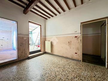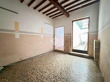 Al primo piano, il cuore della casa si divide oggi in due ampi vani separati: una disposizione classica che si presta perfettamente per creare una zona giorno distinta, con una cucina abitabile servita da un terrazzo abitabile, il vero fiore all'occhiello della proprietà,che una volta sistemato potrà essere un luogo di pace e svago adatto a pranzi e cene con amici e parenti, ed un soggiorno accogliente e riservato.