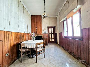 La zona giorno è composta da tre diversi ambienti: la cucina abitabile dotata di camino, il soggiorno e l'ampio loggiato regolarmente chiuso.