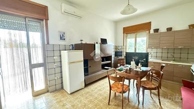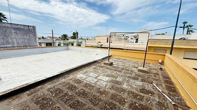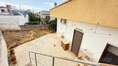 RACALE: Abitazione indipendente con ampio giardino, composta al piano terra da ingresso, soggiorno, cucina abitabile, una camera da letto matrimoniale e un bagno. Box auto. Al piano primo è presente un ulteriore vano con lastrico solare di di proprietà. Allaccio metano, acquedotto e fogna.