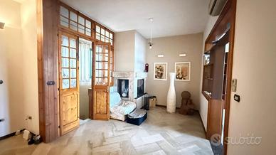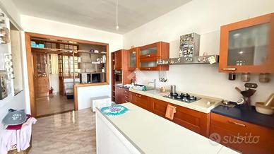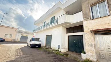 RACALE: immobile da ristrutturare con esposizione angolare, posto su due livelli, al piano terra locale garage con tre accessi indipendenti, di circa 198 mq e box auto separato che con una scala interna porta direttamente all'appartamento al piano primo anche esso di circa 198 mq composto da ingresso, tinello e cucina abitabile con ampio camino, soggiorno, tre camere da letto e due bagni, con balcone perimetrale e terrazzino coperto. Allaccio metano, acquedotto e fogna.