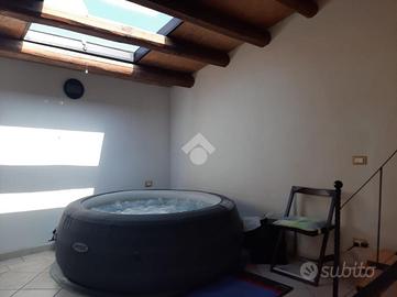 L'immobile è così composto: al piano terra troviamo il garage; al piano ammezzato una camera e un bagno; al primo piano una camera da letto con balcone, al secondo piano la zona giorno composta da cucina abitabile e soggiorno con balconi; al terzo piano la zona notte composta da camera matrimoniale, bagno con doccia, cabina armadio nel soppalco e un terrazzo.