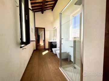 La scala interna accompagna al primo piano dove si trova la zona notte composta da 4 camere da letto matrimoniali, di cui una con cabina armadio, tutte molto ampie e luminose e due bagni entrambi finestrati e con box doccia.