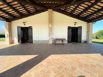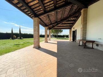 Il punto forte della casa è sicuramente lo spazio esterno, un giardino molto curato con sistema di irrigazione e possibilità di fare una piscina esterna. Oltre al portico di circa 70mq ideale per godere delle giornate all'aperto.