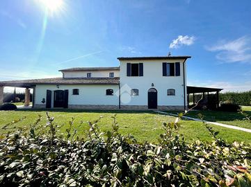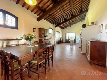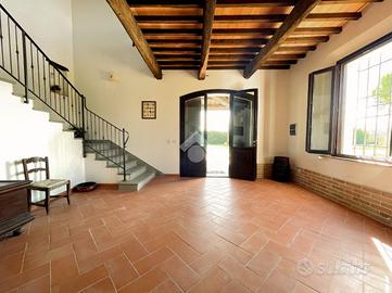 * Corte esclusiva di circa 6.250 mqLa villa, ristrutturata tra il 2008 e il 2010, si sviluppa su due piani dove al piano terra si trova un ampio ingresso, soggiorno con camino, ampia zona giorno di circa 50mq con cucina e sala da pranzo e un deposito di circa 80mq. Si trova inoltre il primo bagno finestrato con box doccia.