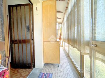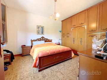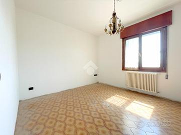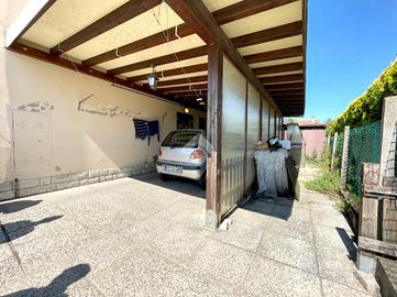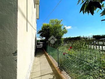 L'appartamento del piano terra è destinato ad uso investimento, infatti è attivo un contratto di locazione, ed è composto da ingresso, un bagno, una cucina-soggiorno, due camere da letto, una zona ripostiglio ed una zona lavanderia; in esterno è presente una porzione di corte ad uso esclusivo che comprende un portico utilizzato ad oggi come posteggio per l'auto.