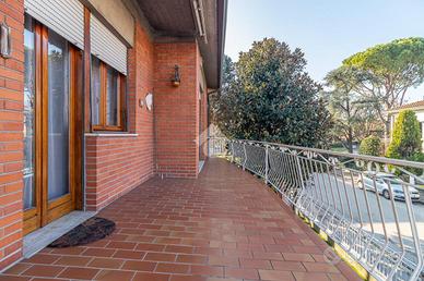 Completa la proprietà un ampio garage e una lavanderia al piano terra e un giardino disposto sui 4 lati dell'abitazione.