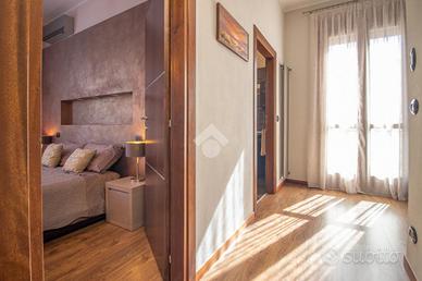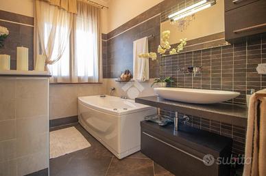 Al primo piano troviamo una camera matrimoniale con cabina armadio, due ulteriori stanze ideali come camerette o studio, bagno con vasca e due balconi.