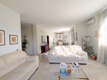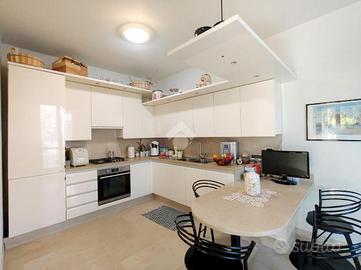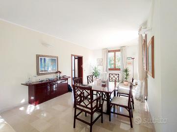 La zona pranzo,anch'essa molto vivibile e aperta sia nel soggiorno e sia verso l'esterno,è comunicante con la cucina abitabile;da quì si accede anche ad una comoda area lavanderia, con un accesso tramite scala interna al sottotetto, un ulteriore spazio grande come tutta l'abitazione.