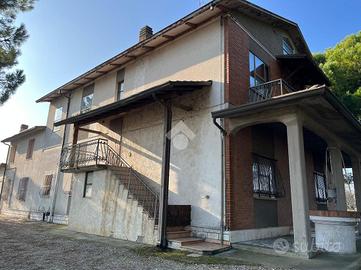 La proprietà è raggiungibile tramite strada privata e si presenta con un suggestivo viale d'ingresso, parte integrante dell'ampio spazio esterno che circonda l'abitazione.