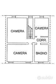 Il piano primo ospita la zona notte, con tre camere da letto ben proporzionate, un bagno con vasca e un corridoio che garantisce una distribuzione funzionale e privacy per ogni ambiente.