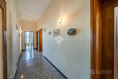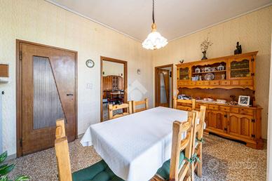 Salendo al primo piano, si accede all'appartamento principale di circa 160 mq, composto da tre camere da letto matrimoniali, una cucina abitabile, un ampio soggiorno e sala da pranzo con balcone, uno studio, un bagno e un grande terrazzo esposto a sud, perfetto per rilassarsi all'aperto.
