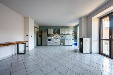 Salendo attraverso scala interna si accede alla zona giorno composta da un ampio locale adibito a soggiorno con cucina a vista.