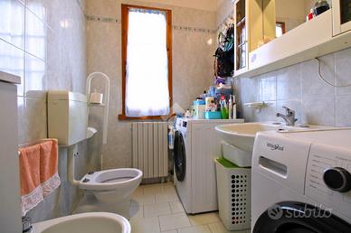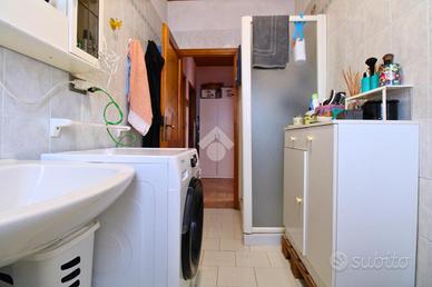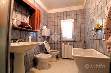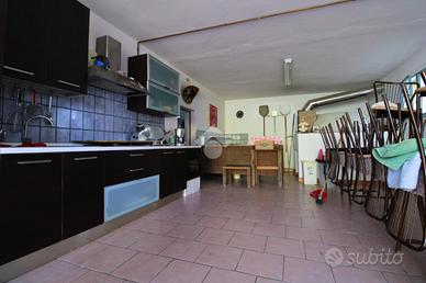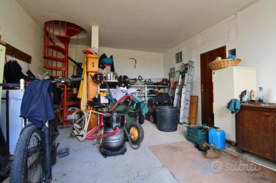 Dal garage, si accede poi al secondo bagno con doccia, tramite il disimpegno si prosegue verso il locale di deposito, utilizzato come cantina, e l'accogliente tavernetta servita di angolo cottura e forno a legna costruito in opera.