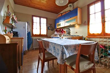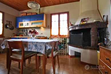 L'immobile si apre sull'ampia zona giorno con cucina abitabile open space e con camino.