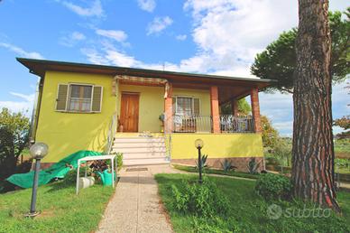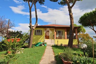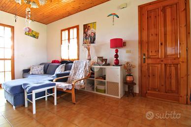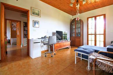 Dall'ingresso principale o attraverso la porta finestra del soggiorno si giunge alla gradevole terrazza coperta, fornita di un vano con scala a chiocciola che conduce internamente al garage al piano terra.