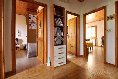 Il disimpegno introduce il reparto notte dove trovano spazio uno studio, una camera con balcone, il bagno, una camera matrimoniale ed il ripostiglio con accesso alla soffitta, non praticabile a causa delle travi a sostegno del tetto.