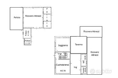 L'immobile è composto da ingresso, taverna attualmente ad uso cucina, bagno, cucina abitabile e soggiorno.